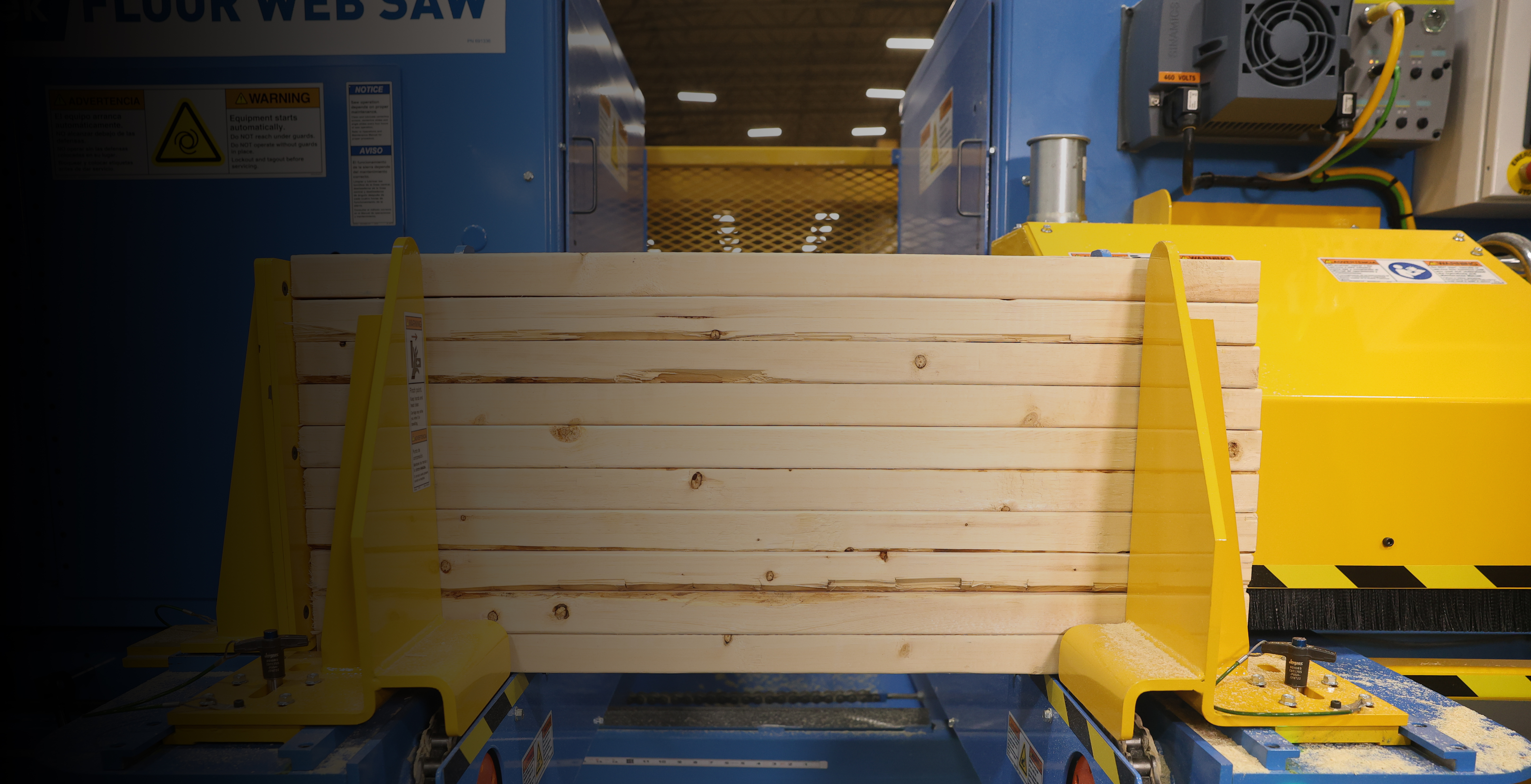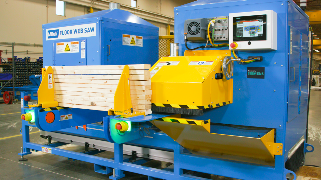 The Floor Web Saw is an efficient, high-volume saw designed to minimize floor truss lead times, cutting wood web parts rapidly and safely.